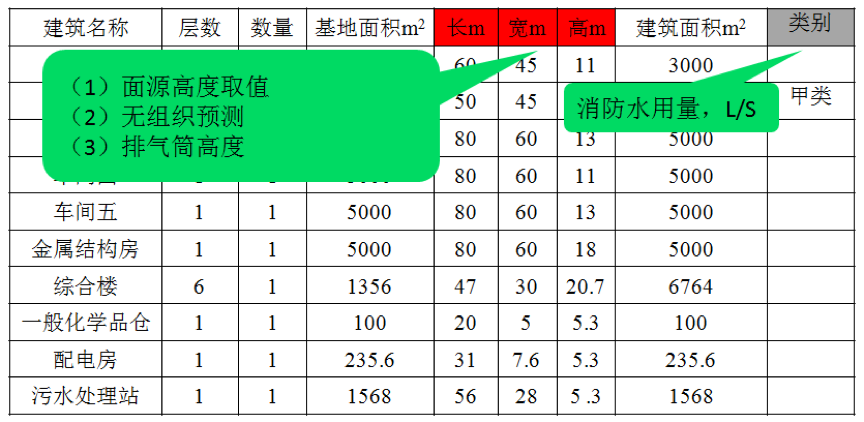 - 項(xiàng)目建筑物信息需包括建筑物的長、寬、高,用于判定大氣污染物排放面源高度、無組織預(yù)測、排氣筒高度;