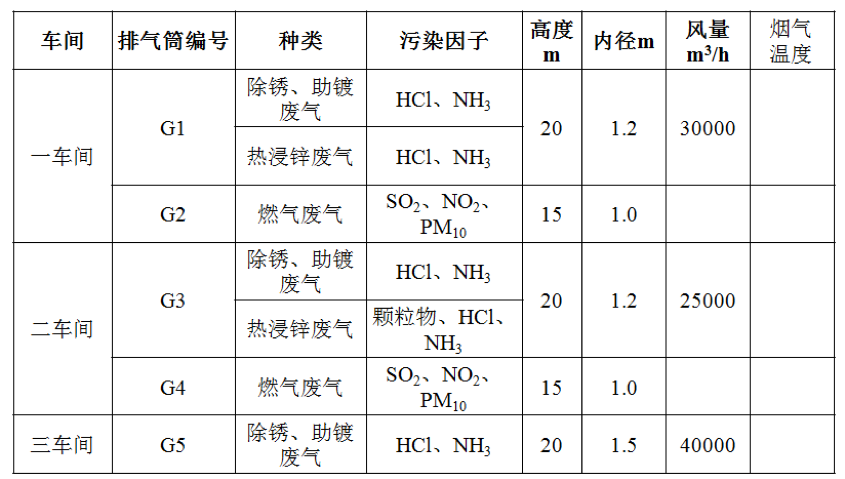 如表格所示,需要收集的排氣筒參數(shù)信息應(yīng)包括排氣筒位置、編號、廢氣種類名稱、污染因子、排氣筒高度、內(nèi)徑、風(fēng)量和煙氣溫度等。