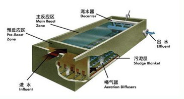 SBR工藝是將反應(yīng)、沉淀和在一個池體內(nèi),在同一池體內(nèi)分別完成進(jìn)水、反應(yīng)、沉淀、排水、閑置等五個過程。